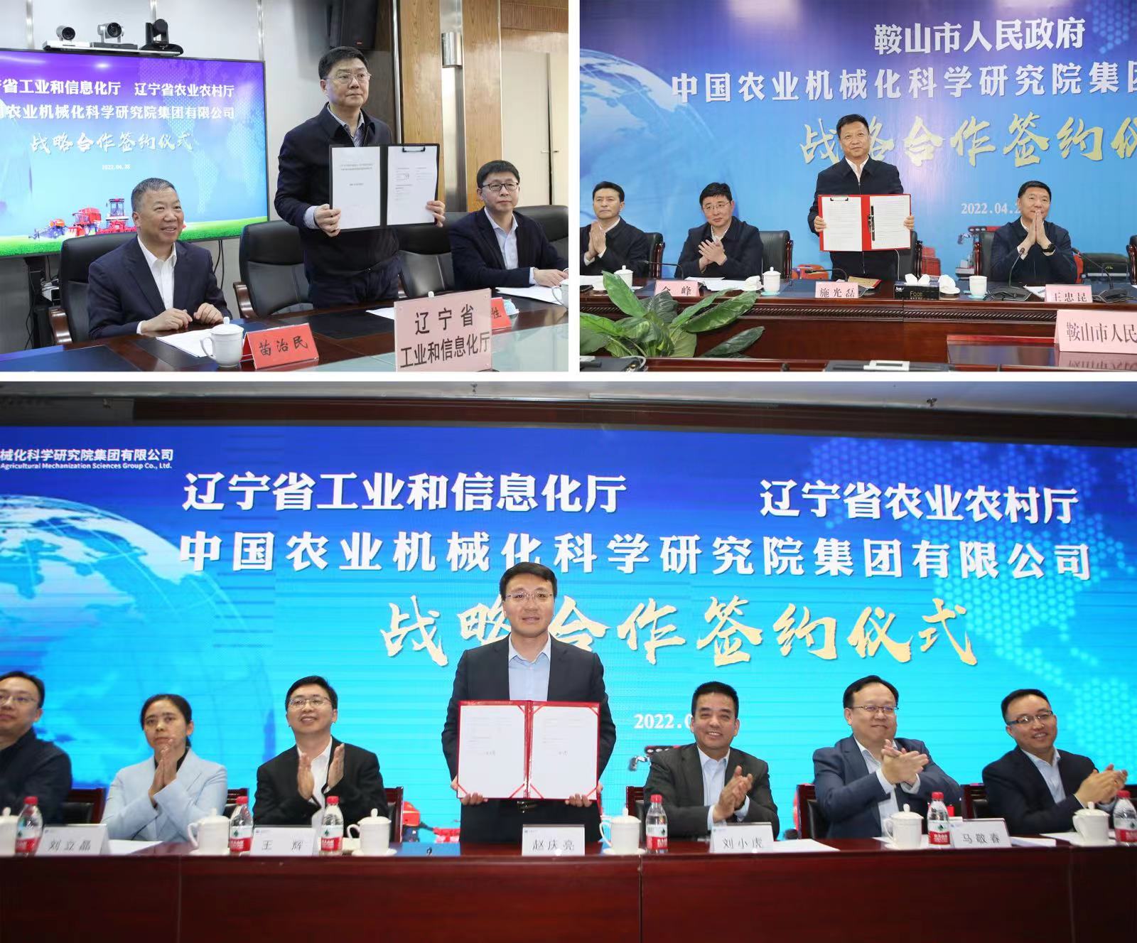 2022年4月28日,中国农业机械化科学研究院集团有限公司(简称“中国农机院”)与辽宁省工业和信息化厅、农业农村厅,鞍山市人民政府分别签署战略合作协议,签约仪式通过线上进行。辽宁省工信厅厅长苗治民、农业农村厅副厅长杨洪波,鞍山市委副书记、市长王忠昆,金年会官方体育登录入口党委书记、董事长、总经理刘小虎等共同见证签约。签约仪式由金年会官方体育登录入口副总经理马敬春主持。