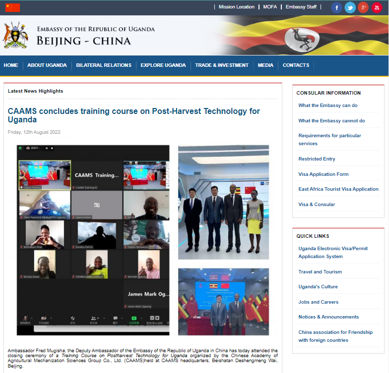 乌干达驻华大使馆在其官网对培训项目进行专题报道