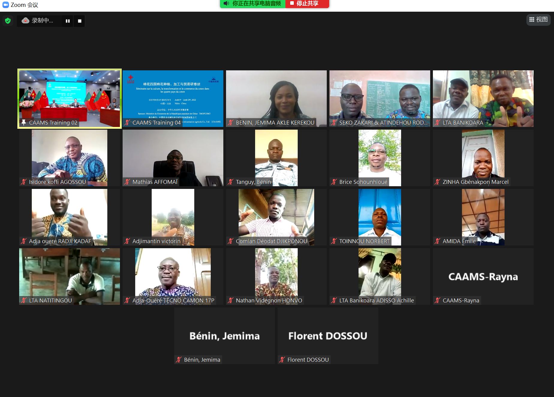 此次到访时值“棉花四国棉花种植、加工与贸易研修班”项目闭幕,本次培训共有来自贝宁的20位棉业领域专员参加为期21天的线上培训项目。